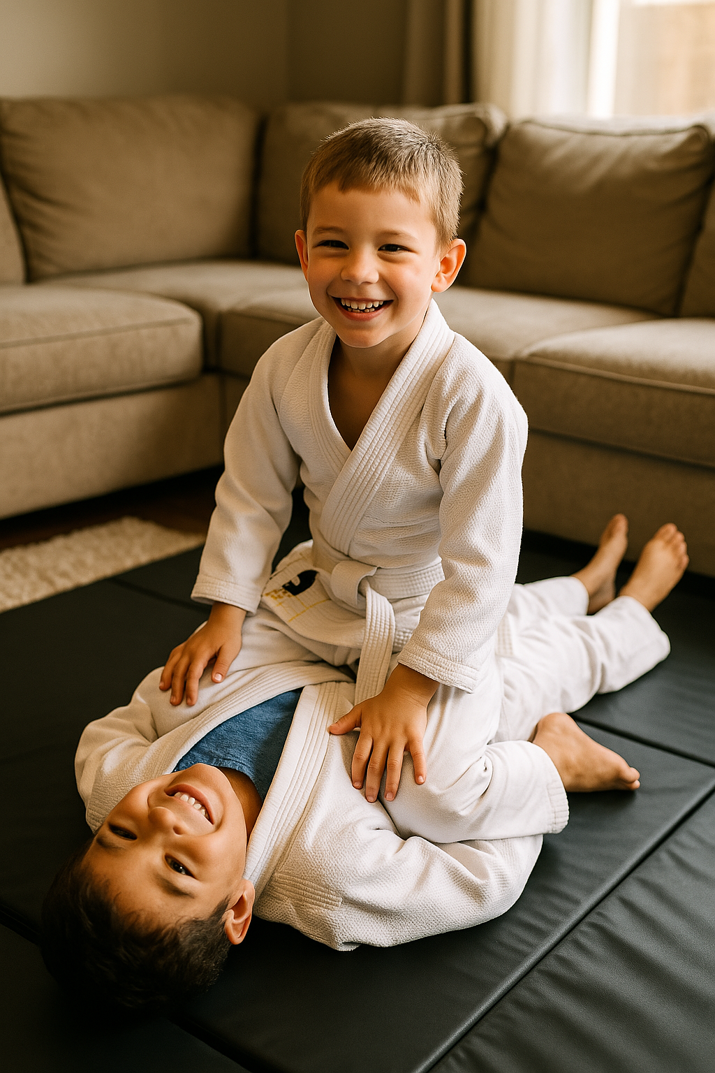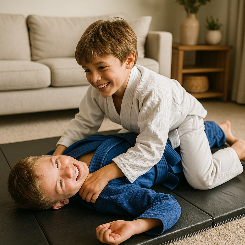 No mats? No gym? No problem. Every lesson works in your living room with two kids, a parent-child duo, or a grappling dummy.